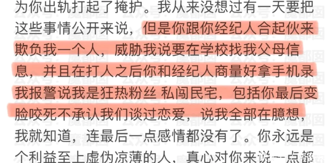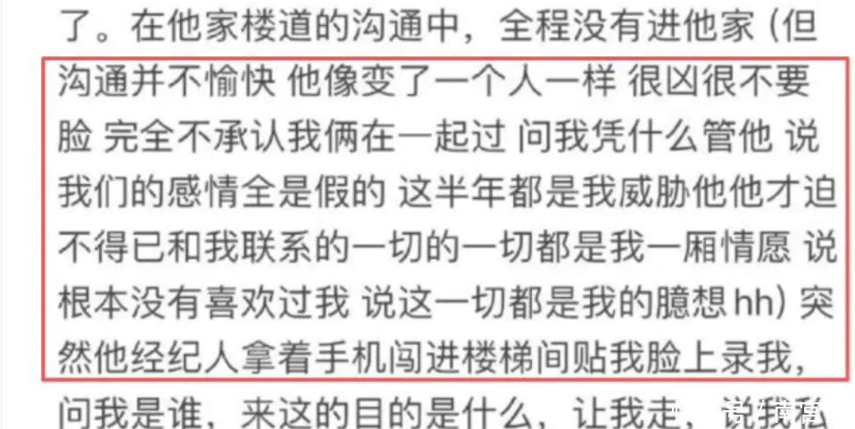 不仅如此,打人之后李禹熹熹被荣梓杉和经纪人威胁,并表示要去她学校查找她父母的资料,还将他们的关系说成是“狂热粉丝私闯民宅”。