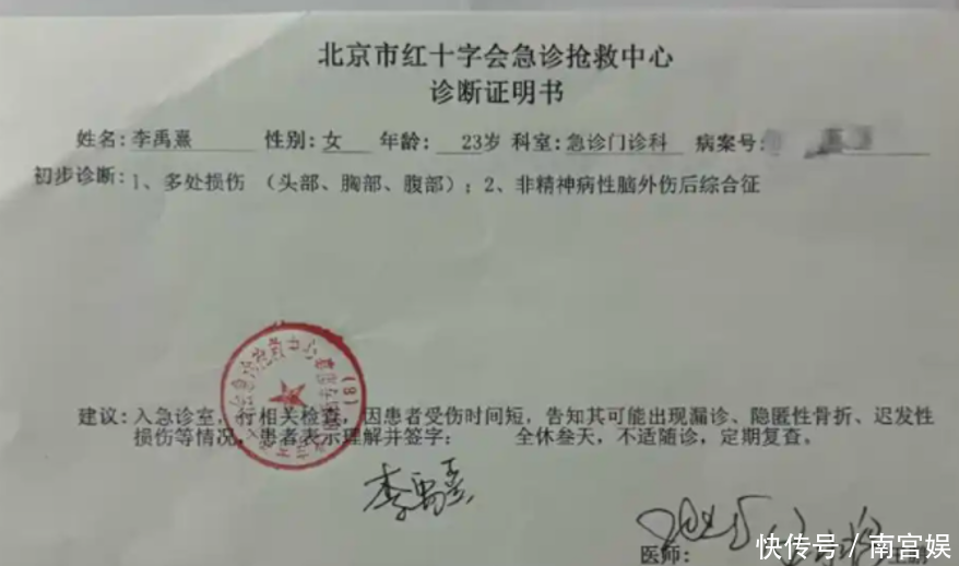 由于事发突然李禹熹熹没有任何准备,而且荣梓杉是将其“拎住”再往地上摔,导致李禹熹熹的头部和肩膀直接磕在地上。